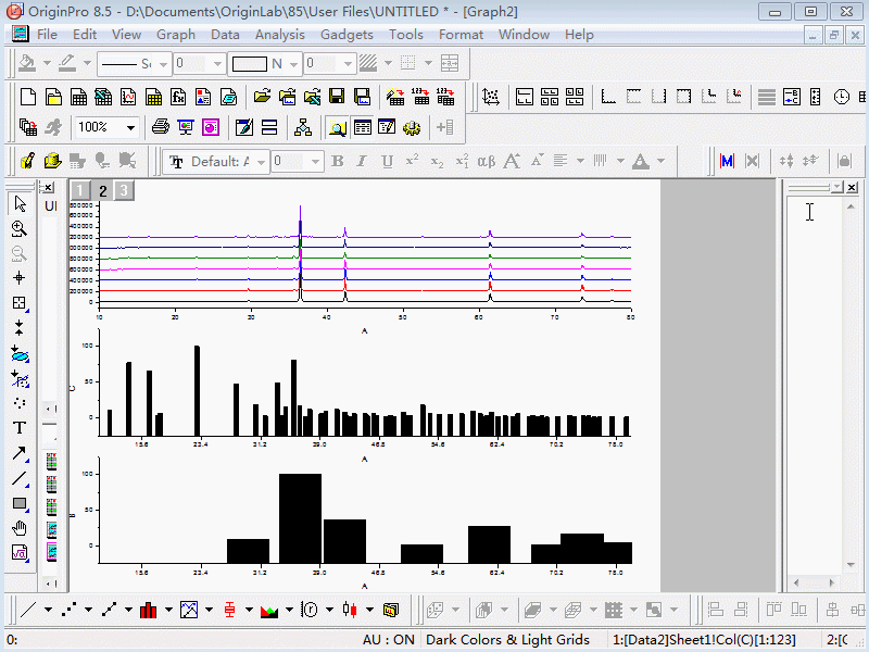 這里可以安排3層,按照3行1列,第一層當(dāng)然是放置疊圖,第二、三層分別放置兩種晶體的PDF卡線。這里有個騷操作:先點擊需要繪制的子圖區(qū)域,然后選中數(shù)據(jù)表所有數(shù)據(jù),移動鼠標(biāo)到右邊緣,待鼠標(biāo)光標(biāo)右下方出現(xiàn)3層圖的圖標(biāo)后,拖動數(shù)據(jù)到子圖區(qū)域,即可繪圖。這個操作是不是騷操作!