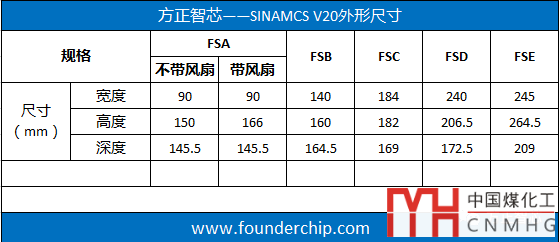 從外形尺寸上劃分,SINAMICS V20包括:FSA、FSB、FSC、FSD、FSE五種產(chǎn)品(FS為“Frame Size”的縮寫,也就是“外形尺寸”),其中,F(xiàn)SA又包括FSA-A、FSA-B和FSA-C三個子系列,不同尺寸的變頻器其功率大小不同。下面這張表格是具體的尺寸數(shù)據(jù),在電氣柜設(shè)計時可做參考: