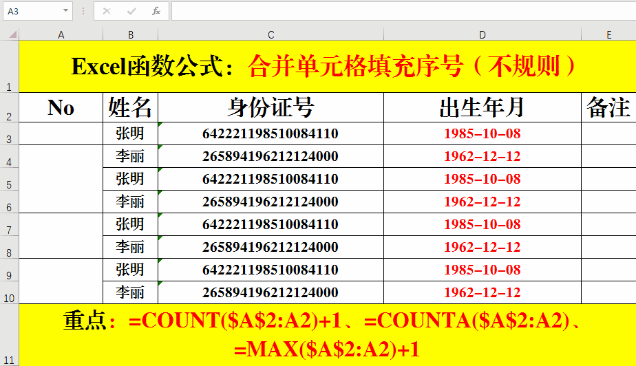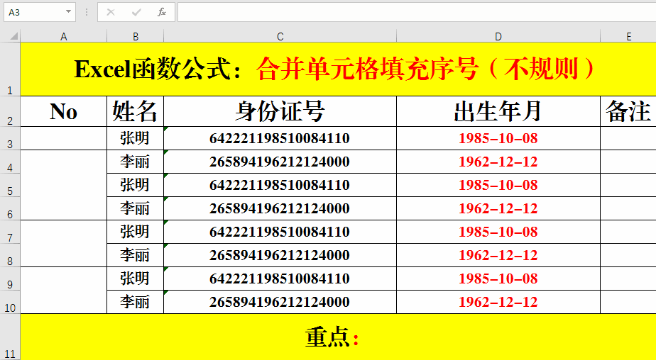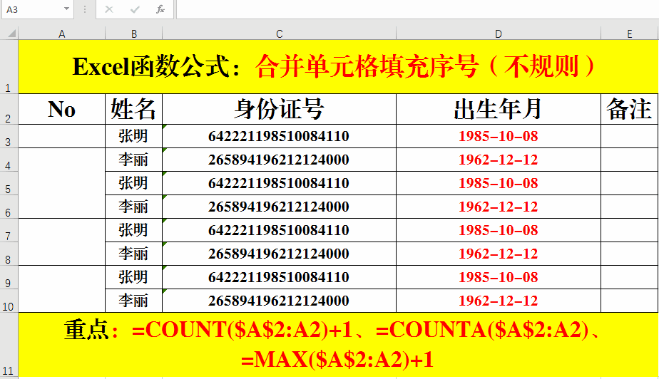 Excel函數(shù)公式:對已經(jīng)合并單元格快速填充序號