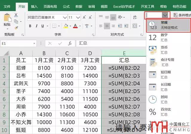 這種情況大多數(shù)是因?yàn)镋列的格式是文本的格式造成的,我們選中數(shù)據(jù)區(qū)域,在開始菜單欄右上角就可以看到格式,這里是文本格式的