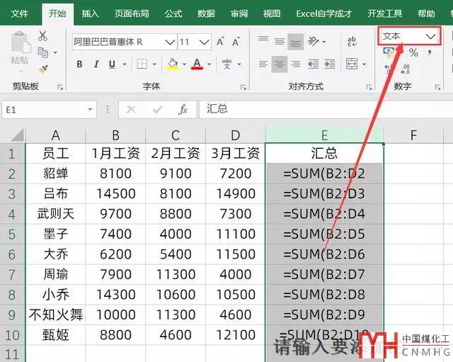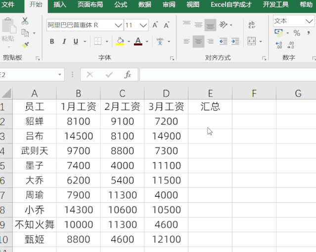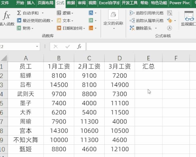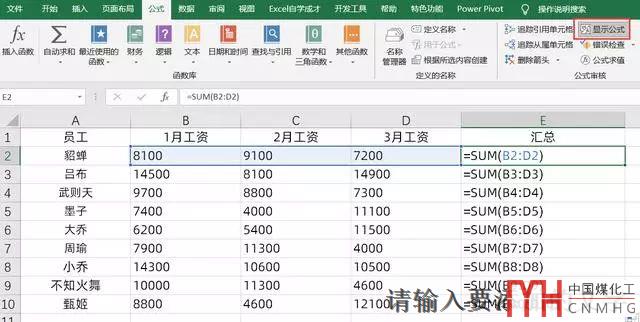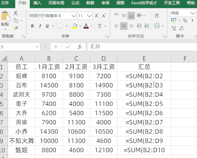 如下所示,我們?cè)谟?jì)算9個(gè)員工的工資匯總,當(dāng)我們輸入公式: