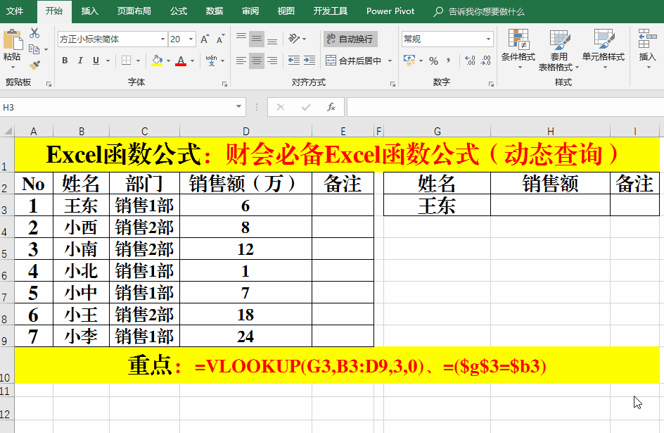 1、在目標單元格中輸入公式:=VLOOKUP(G3,B3:D9,3,0)。