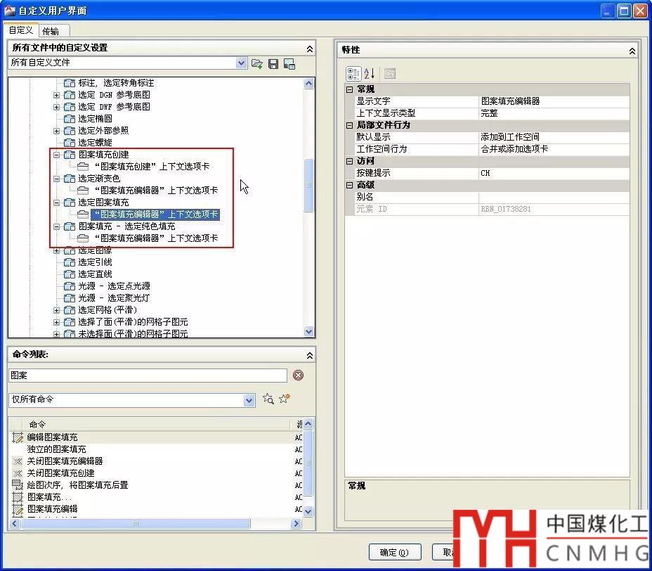 調(diào)用填充對話框的方法很簡單,就是執(zhí)行填充編輯HATCHEDIT的命令,快捷鍵HE,但如果想要雙擊填充時也彈出對話框的話,就需要執(zhí)行CUI命令,在自定義界面對話框中將填充圖案的雙擊動作設(shè)置為填充編輯,如下圖所示。
