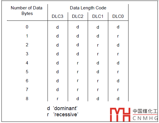 數(shù)據(jù)長度編碼位(DLC),4位(4 bits),包括DLC3~DLC0,表示該幀實際發(fā)送的數(shù)據(jù)的長度(以字節(jié)為單位);DLC的編碼規(guī)則如下: