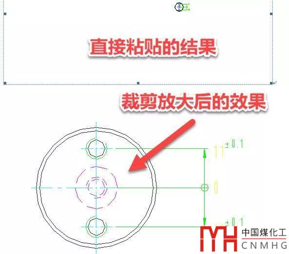 與粘貼OLE一樣,在粘貼前也需要需要在CAD中盡量放大圖形充滿窗口。如果粘貼前圖形在視口中顯示很小,在WORD和EXCEL中粘貼后會(huì)有大量空白區(qū)域,裁剪后將圖形拉大后一些文字和圓可能會(huì)變形。