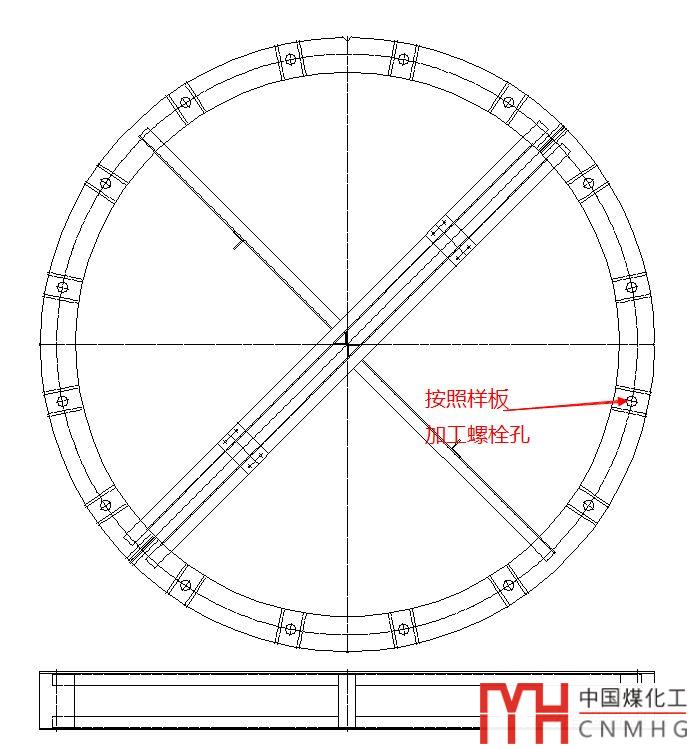 制造單位先做基礎(chǔ)樣板,樣板在螺栓中心圓的螺栓處上開約6mm的小圓孔。