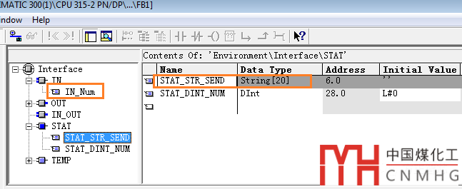 在實(shí)際的通信中,有時(shí)候我們需要把接收到的字符串(STRING)類型的數(shù)據(jù)轉(zhuǎn)換成整形數(shù)據(jù)來(lái)進(jìn)行一些運(yùn)算處理,完成之后又需要把整形數(shù)據(jù)轉(zhuǎn)換成字符串發(fā)送出去;對(duì)于這些需求,STEP7提供了兩個(gè)很有用的函數(shù)FC5和FC37;為了說(shuō)明怎么使用我們先來(lái)創(chuàng)建一個(gè)FB塊,它的輸入?yún)?shù)和靜態(tài)變量參數(shù)如下: