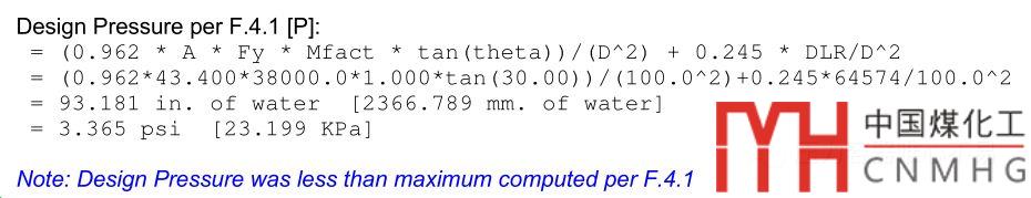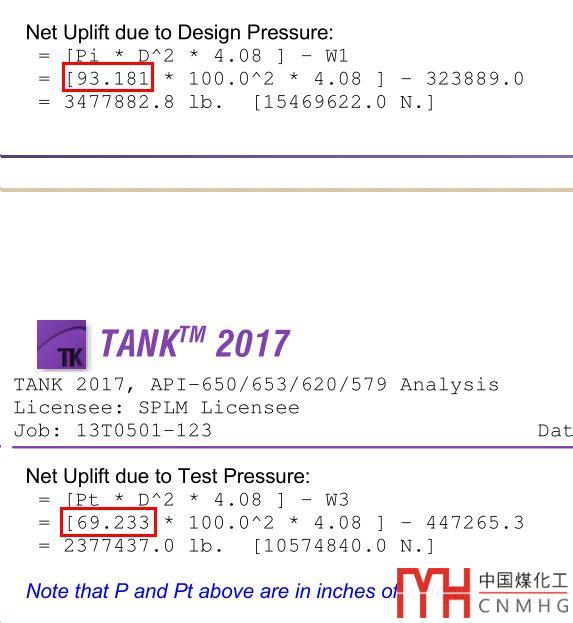 所以根據(jù)API 650-2016原文, Design Pressure中的升舉力中的Pi應(yīng)該為儲(chǔ)罐的設(shè)計(jì)內(nèi)壓(Design Internal Pressure),此值為工藝提供寫(xiě)在數(shù)據(jù)表中的設(shè)計(jì)壓力。