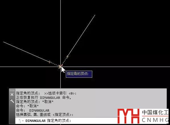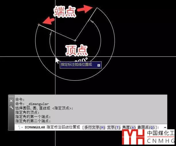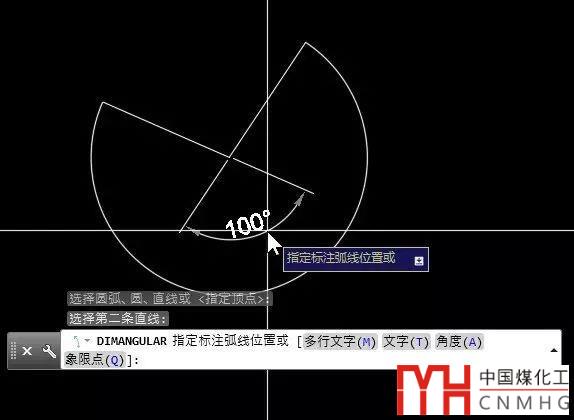 假如上面的例圖中沒有圓弧,只有組成角度的兩條邊線,我們仍要標注大于180的角度怎么辦?我們再看看命令行提示:選擇圓弧、圓、直線或 <指定頂點>,選擇圓弧、圓、直線是默認的選項,可以直接操作,后面<>里的選項需要按回車或空格后會執(zhí)行,其他命令中這項參數(shù)也是如此。