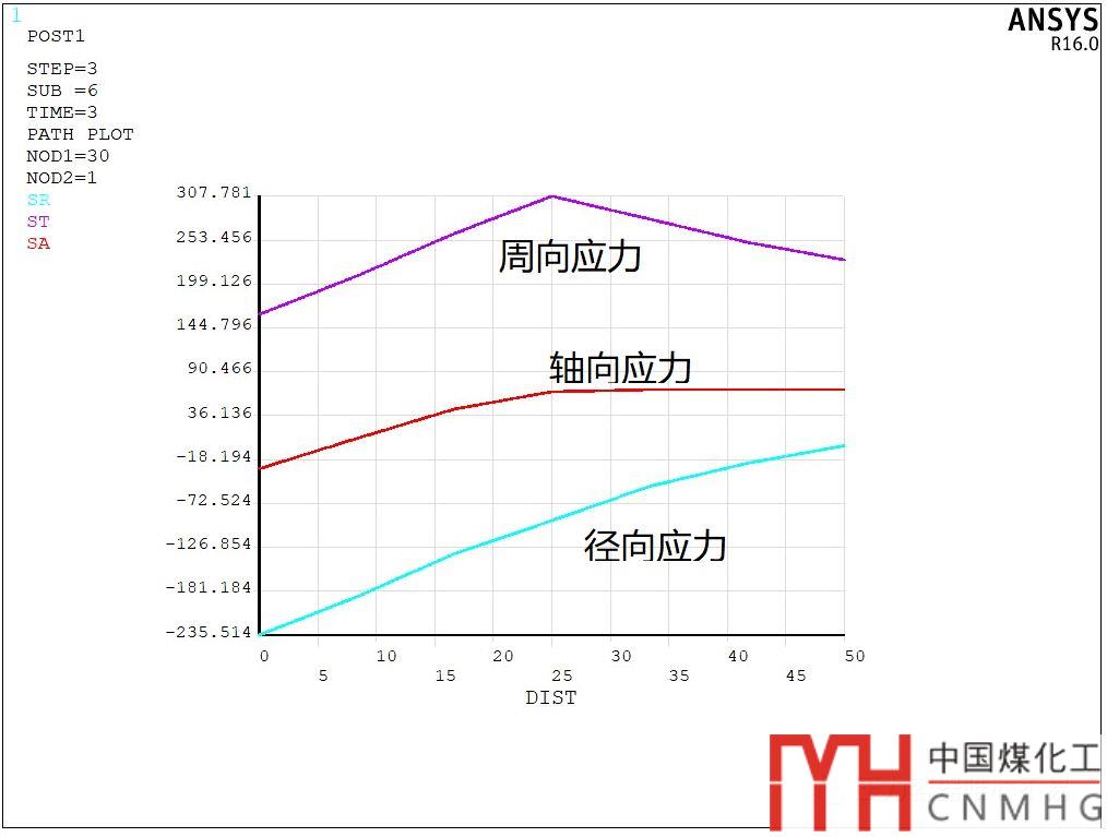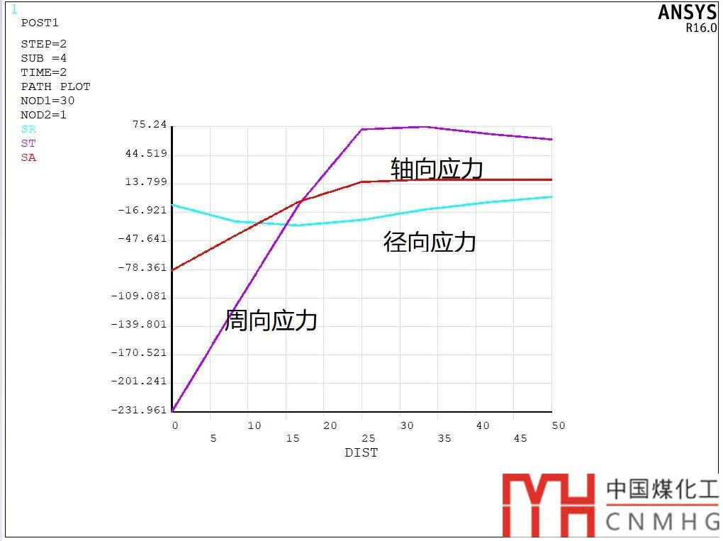 軸向應(yīng)力分布如下圖: