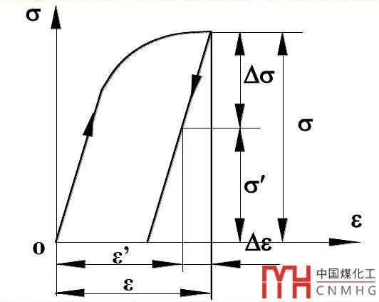當(dāng)厚壁圓筒進(jìn)入彈塑性狀態(tài)后,卸除內(nèi)壓,由于卸載過(guò)程的應(yīng)力應(yīng)變曲線和首次加載的應(yīng)力應(yīng)變曲線不一樣,所以會(huì)在筒體內(nèi)部產(chǎn)生殘余應(yīng)力。其卸載過(guò)程的應(yīng)力應(yīng)變?nèi)缦拢?/p>