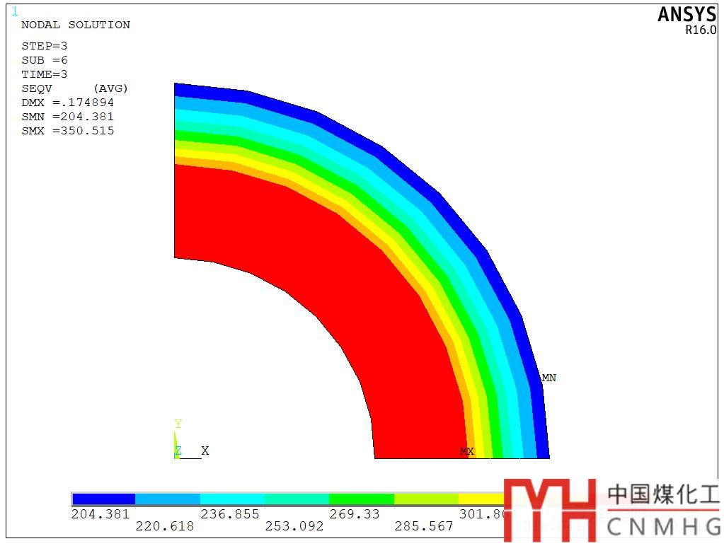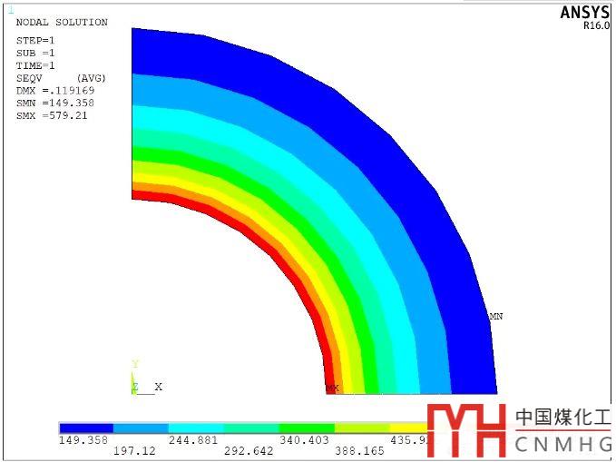 上圖內(nèi)壁的應(yīng)力達(dá)到579MPa,實(shí)際上已經(jīng)屈服,發(fā)生塑性變形。