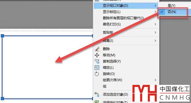 選中視口后右鍵,將“顯示視口對象”設置為否,也可以讓視口變成空白,如下圖所示。