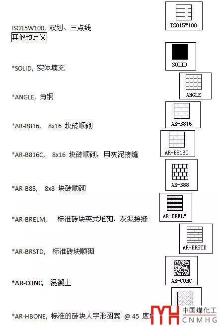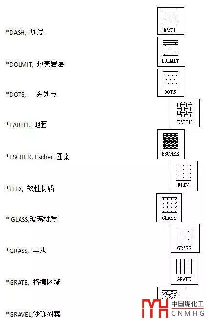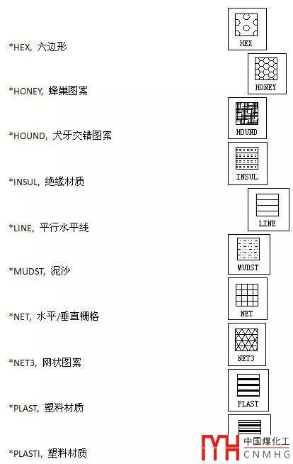 CAD常用的填充名稱和圖案對照表