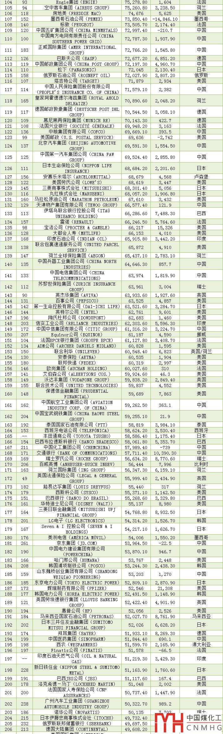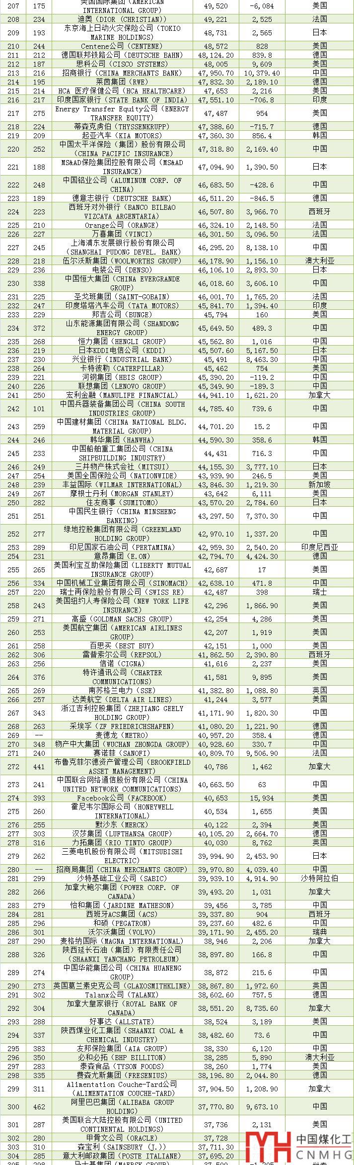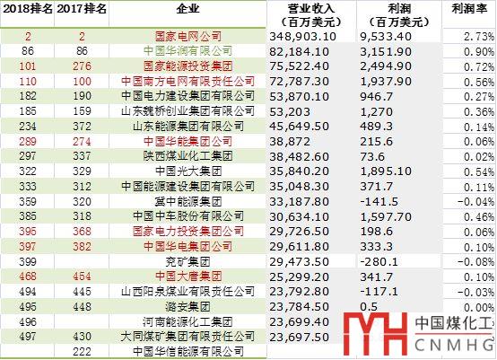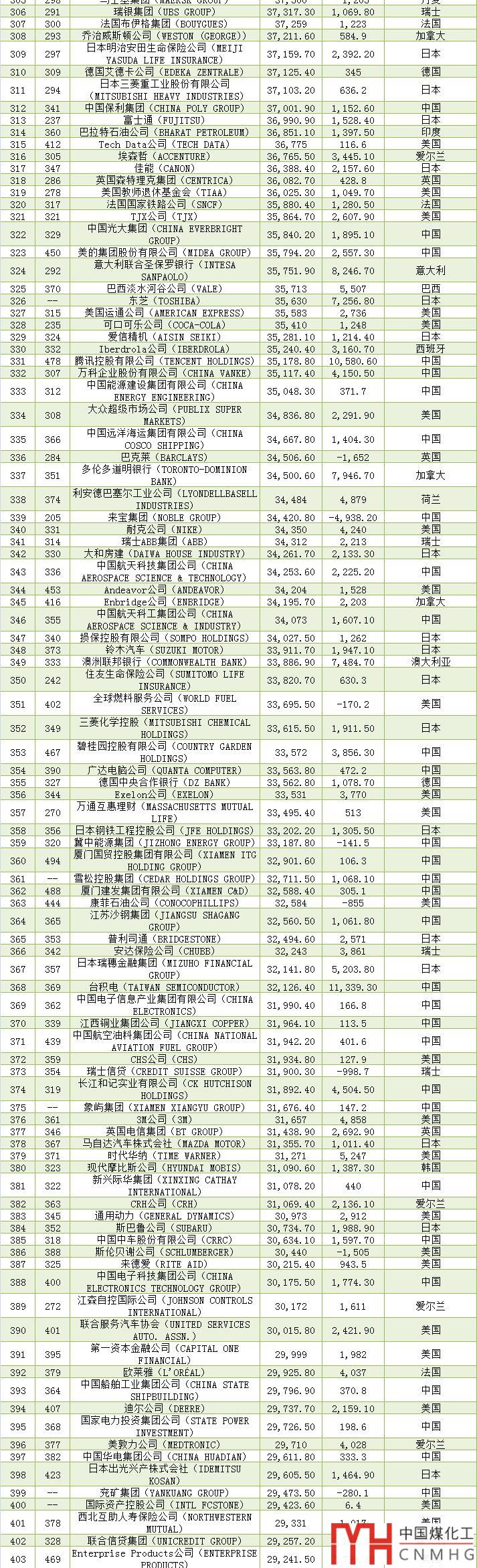 | 496 | -- | 河南能源化工集團(HENAN ENERGY & CHEMICAL) | 23699.4 | 鄭州 |