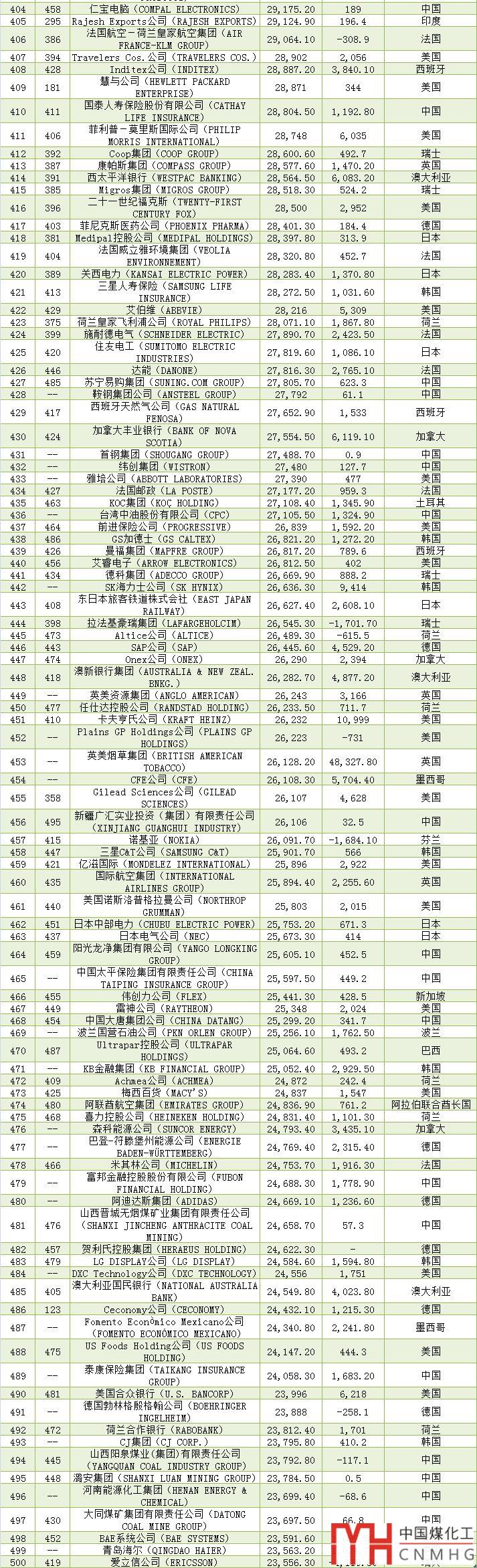 | 494 | 445 | 山西陽泉煤業(yè)(集團)有限責(zé)任公司(YANGQUAN COAL INDUSTRY GROUP) | 23792.8 | 陽泉 |