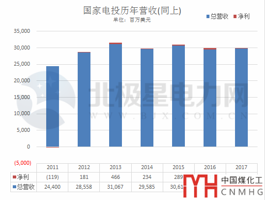 以下是北極星電力網(wǎng)統(tǒng)計的各大電力集團近十年排名(2009年-2018年)和營收(2008年-2017年)情況:
