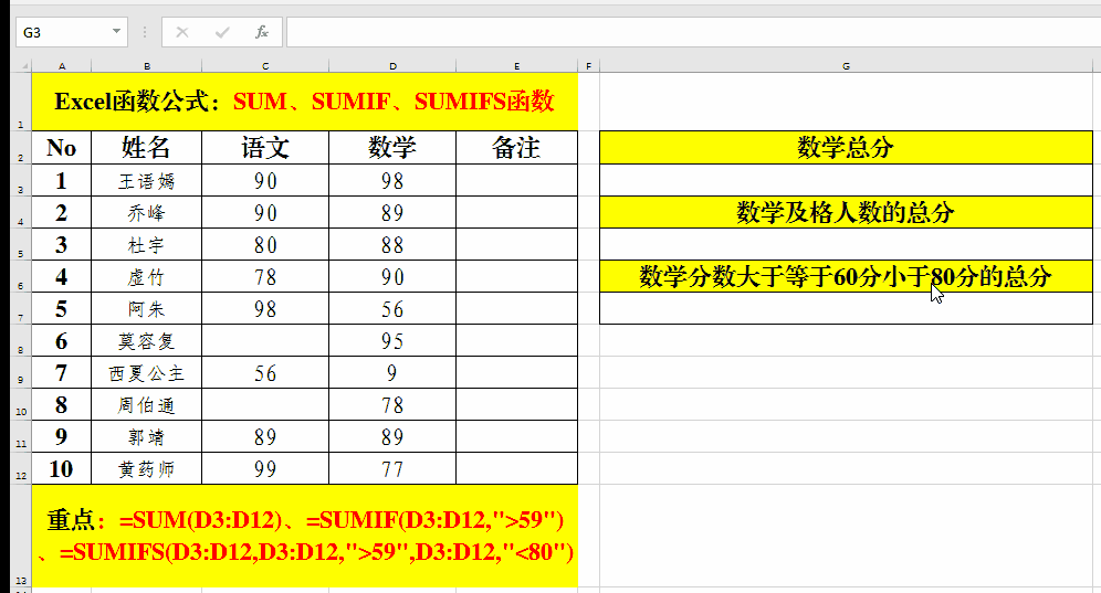(1)SUM函數(shù)主要計(jì)算條件范圍內(nèi)的和。