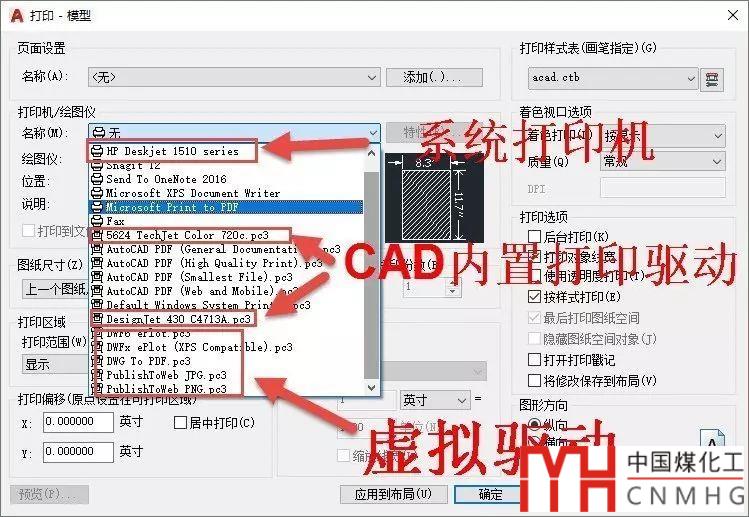 打印的第一步就是選擇打印機(jī)/繪圖儀,其實(shí)就是選擇一種用于輸出的打印驅(qū)動(dòng)。