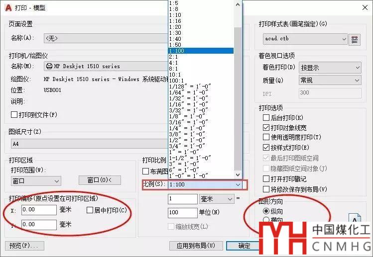 如果正式打印,就需要嚴(yán)格按照?qǐng)D紙上標(biāo)明的,我們預(yù)先設(shè)定好的打印比例去打印,例如選擇1:100。