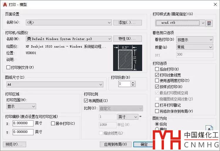 如果對(duì)圖形的輸出顏色和線寬沒(méi)有要求的話,紙張和比例設(shè)置合適后就可以打印了。