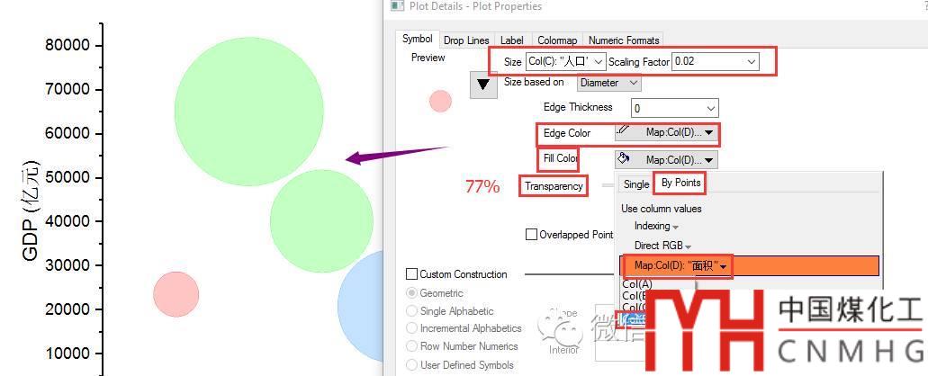 Transparency:透明度,用于顯示重疊的氣泡,此處設(shè)為77%