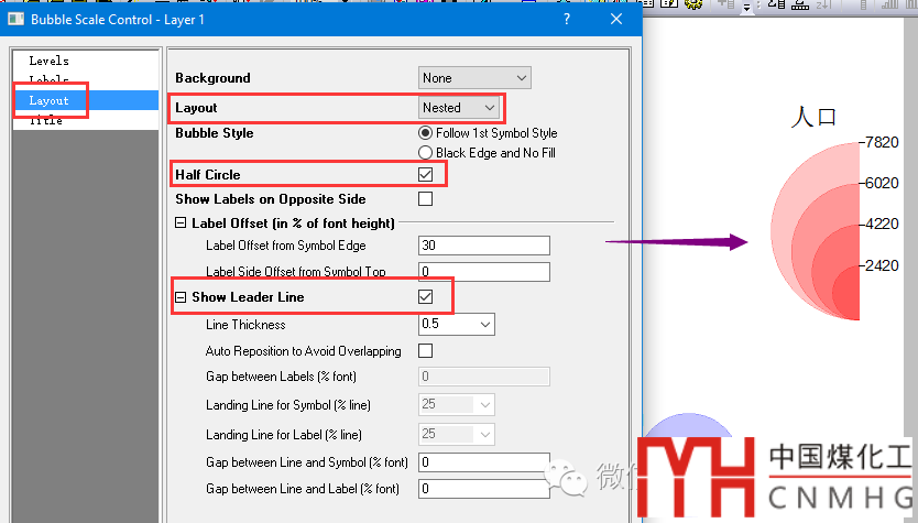 大小圖例:指示氣泡大小的圖例,雙擊右側(cè)排列的氣泡打開Bubble Scale Control面板
