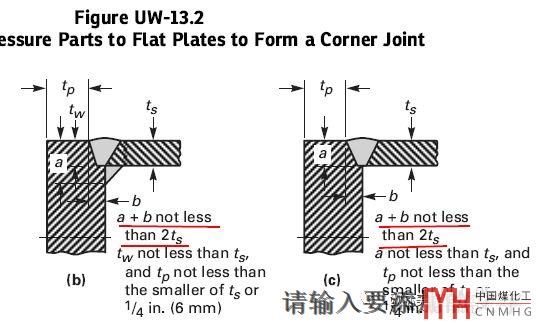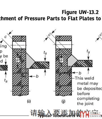 二、ASME Ⅷ-1篇UW-13.3給出了管板和殼體的焊接連接結(jié)構(gòu)對不兼做法蘭的帶凸肩的管板提出了要求。UW-13.2給出了不帶凸肩的焊接結(jié)構(gòu)要求。具體見圖