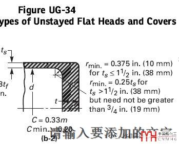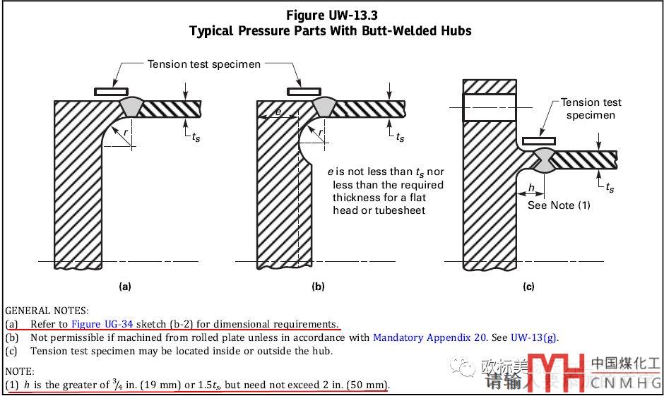 注意UW13.3的注是一一對應(yīng)的關(guān)系,雖然沒有明確說但為什么理解為一一對應(yīng)關(guān)系看各注的內(nèi)容能得出這個結(jié)論。如注(a)對應(yīng)節(jié)點(diǎn)(a);但也有部分AI認(rèn)為兼做法蘭帶頸部的內(nèi)外倒角也要滿足UG-34 (b-2)的要求(大部分AI認(rèn)為不需要)。雖然(c)節(jié)點(diǎn)沒有倒角半徑的要求但建議參照附錄2法蘭結(jié)構(gòu)r≥5mm。