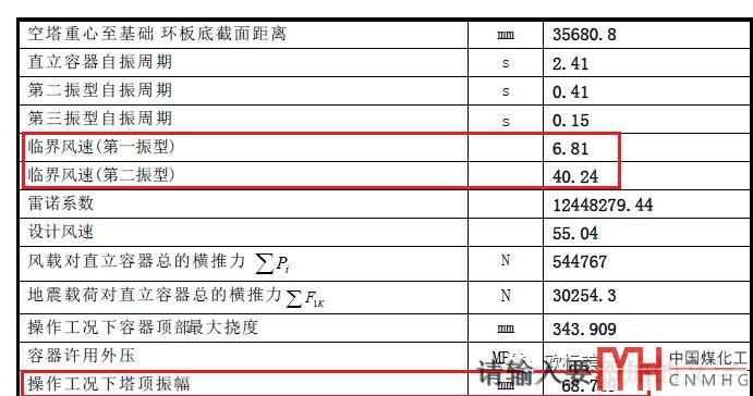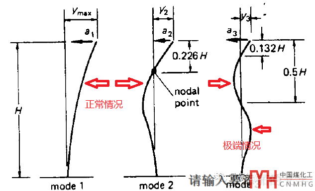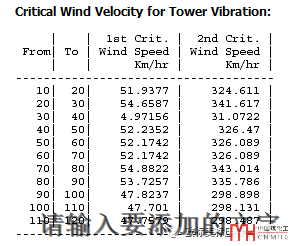 (此臺(tái)設(shè)備70多米高,高徑比大于20.發(fā)生三階振動(dòng)需要的風(fēng)速為:Vc3=6.81×2.41/0.15=109.4m/s,所以不可能發(fā)生三階振動(dòng)。)