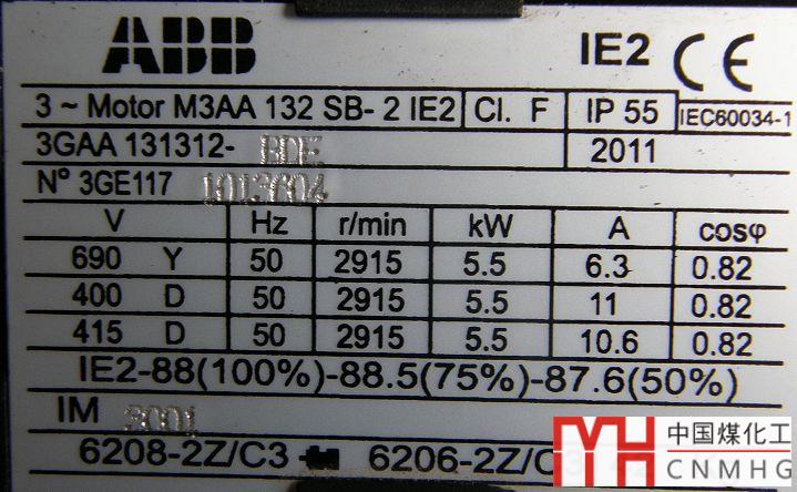 從銘牌中可以這是一臺(tái)ABB的三相電動(dòng)機(jī),其關(guān)鍵數(shù)據(jù)如下: