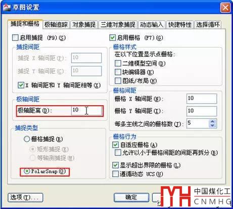 利用極軸追蹤不僅可以鎖定繪圖的角度,還可以和柵格捕捉配合用于確定繪制的長度,這個功能叫極軸捕捉。極軸捕捉的設(shè)置在柵格對話框中,如下圖所示。