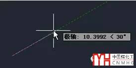 當(dāng)光標(biāo)從該角度移開時,極軸和提示消失。