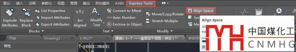 如果你安裝了擴展工具(EXPRESS TOOL),這個問題就好辦了,因為AUTOCAD的擴展工具中提供一個對齊空間ALIGNSPACE的工具,如下圖所示。