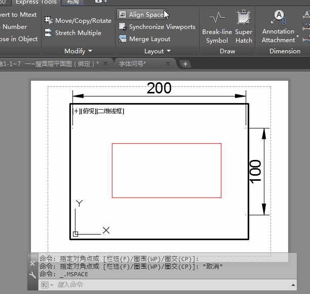 如果事先設置好了視口比例,我們首先要進入視口,平移到能顯示圖形的對齊點,然后就可以用ALIGNSPACE來對齊了,如下圖所示。