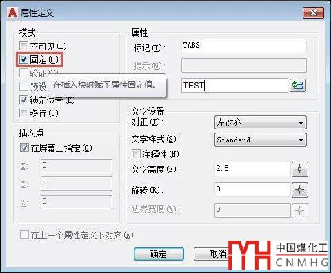 在提示中我們可以看到這個設置的作用,就是屬性值是固定的不能修改,幫助中也是簡單的一句話:在插入塊時指定屬性的固定屬性值。此設置用于永遠不會更改的信息。