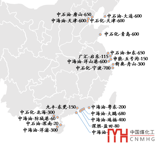 預計,在2020年,還有至少8座在建及擴能接收站項目集中投產(chǎn),不完全統(tǒng)計如下: