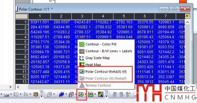 由于上述x和y分別表示角度坐標(biāo)和半徑坐標(biāo),因此基于Matrix格式的數(shù)據(jù)只能繪制Polar Contour theta(x) r(Y)圖。