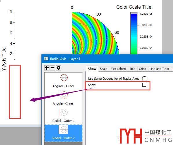 切換到Raidial-Outer 2坐標(biāo)軸中Show標(biāo)簽頁,取消Show后面的勾選,可以不顯示Raidial-Outer 2坐標(biāo)軸。