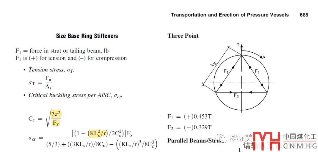 裙座底板處用來加強的型鋼(槽鋼,工字鋼和H型鋼)或鋼管。只要你設(shè)置能起到作用的加強型鋼或鋼管KL/r就不會比Cc大。