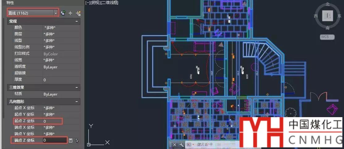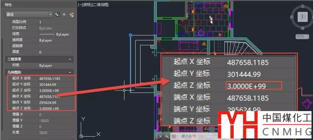 在特性面板找到起點(diǎn)和終點(diǎn)Z坐標(biāo),無論顯示的是3.0000E+99還是多種,直接輸入0,將所有直線的起點(diǎn)和終點(diǎn)的Z坐標(biāo)都改為0。