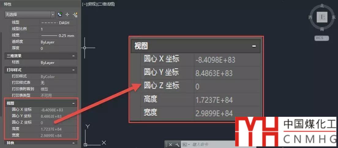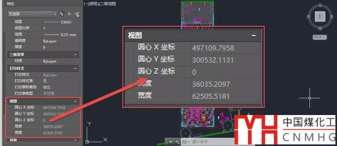 不選擇任何對象,按CTRL+1,打開特性面板,觀察視圖的中心坐標(biāo)和寬度和高度,如圖所示。