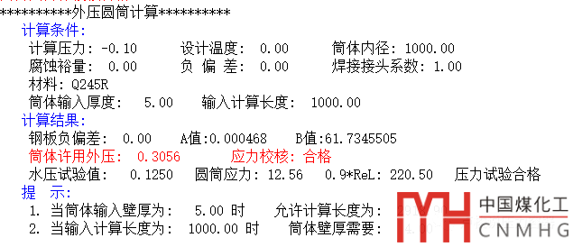 而SW6計(jì)算得到的其許用外壓[P]=0.3056 MPa,和WB的計(jì)算結(jié)果相當(dāng)接近。