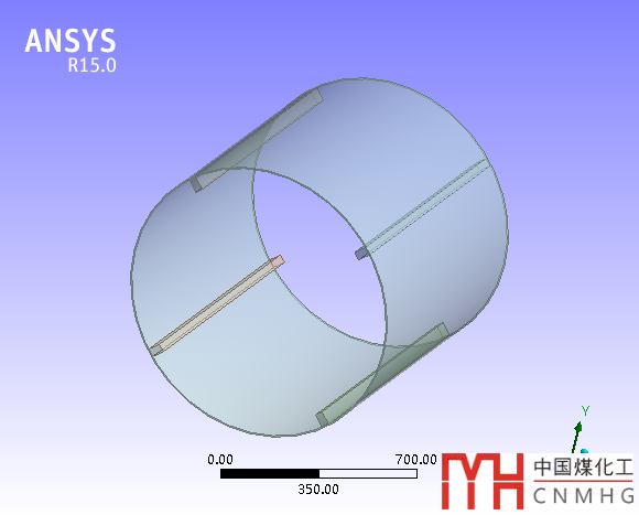 像下圖這種,在圓筒內(nèi)部(或外部)加縱向肋板,能不能提高圓筒的抗外壓能力呢?其實(shí)這個(gè)問題早有定論,效果非常有限,遠(yuǎn)不如環(huán)向肋(周向肋)。我們今天就通過Ansys WB的線性屈曲分析來驗(yàn)證一下。