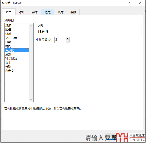 并將格式調(diào)整為百分比,小數(shù)位調(diào)整到對(duì)應(yīng)的位數(shù)。 確定得到結(jié)果。