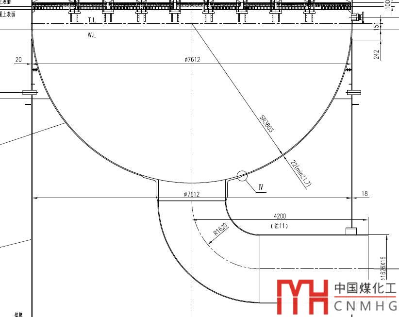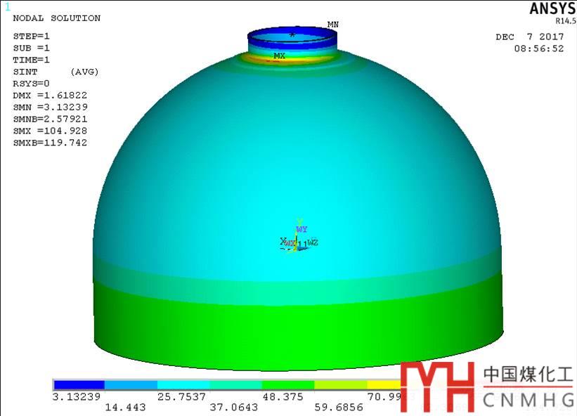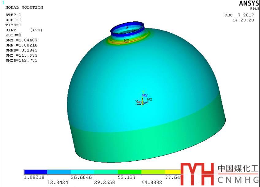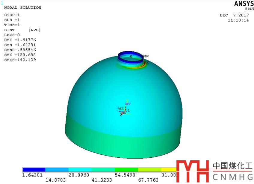 一臺(tái)反應(yīng)器的局部應(yīng)力開(kāi)孔超界,下封頭S30409為22mm,腐蝕裕量為1mm。開(kāi)孔為內(nèi)徑1594mm的接管。接管載荷由應(yīng)力專業(yè)提供,載荷值非常大。