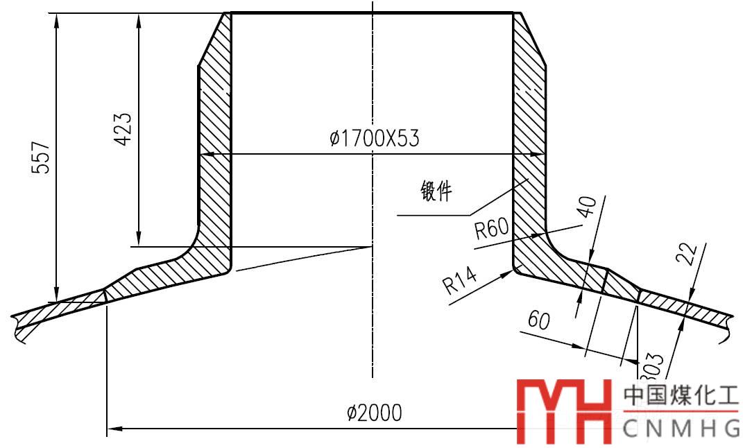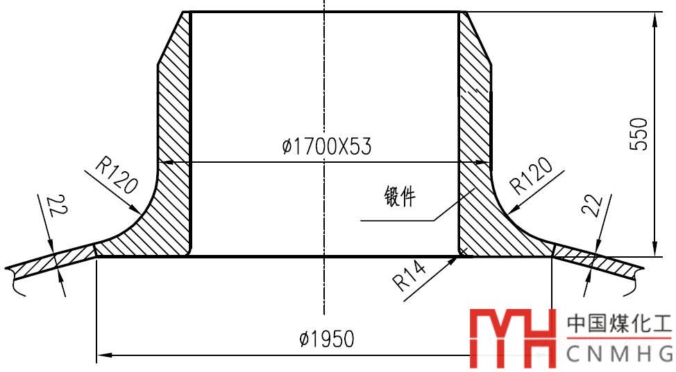 采用對(duì)接鍛件結(jié)構(gòu),鍛件底部采用平齊結(jié)構(gòu),如下圖所示。