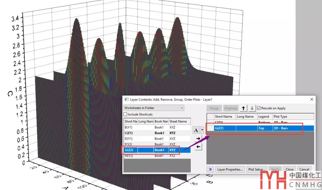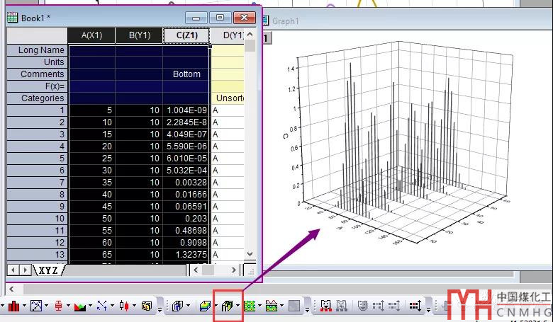 CTRL鍵,選中下層的XYZ,繪制三維條形圖(3D Bar)。