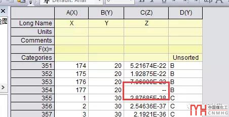 XYZC XYZC類型,第一列表示的X的取值范圍,按曲線依次重復(fù);第二列為Y的取值;第三列為z的取值,第四列為輔助列,取值和第二列,即Y值,的規(guī)律一致,用于控制每組曲線的顏色。
