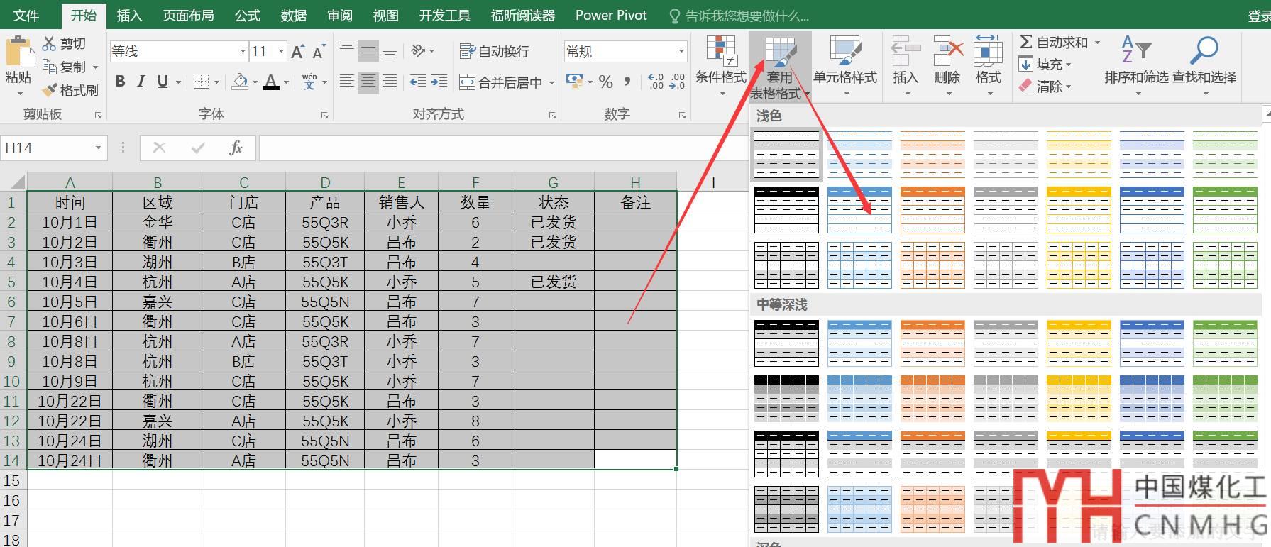 框選區(qū)域數(shù)據(jù),選擇【開始】欄下的【套用表格樣式】,套取任意一個樣式。